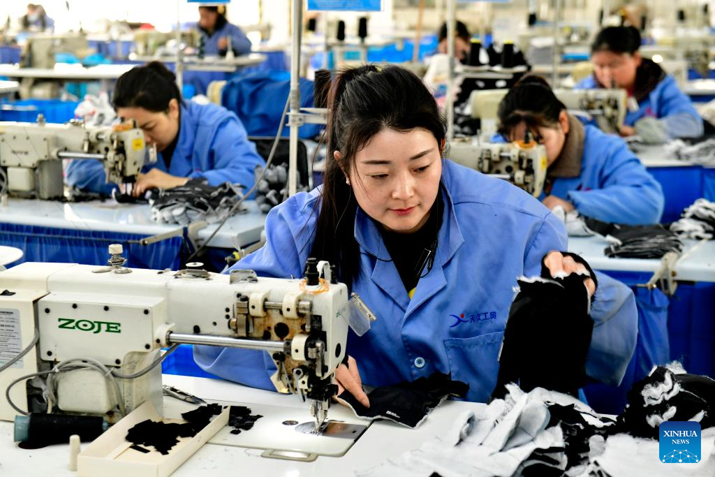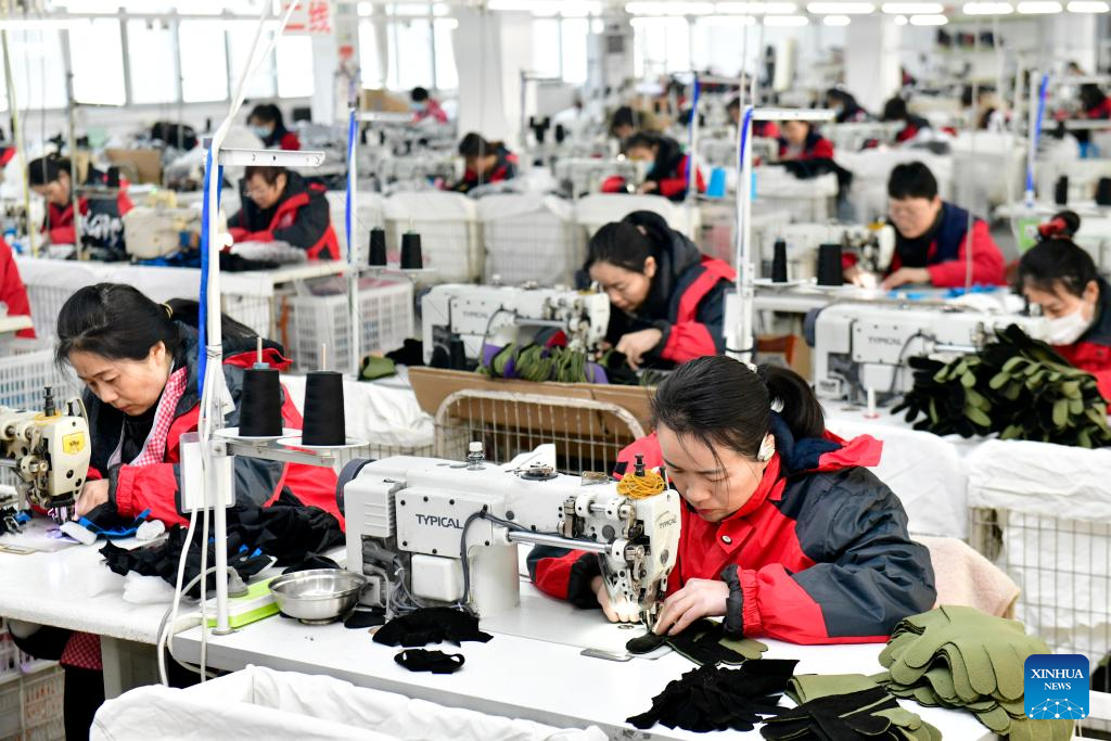 Employees produce ski gloves at a company in Jiaxiang County, Jining City, east China's Shandong Province, Jan. 17, 2025. Jiaxiang County is one of the ski glove production bases in China. The glove products are exported to more than 60 countries and regions in Asia, Europe and the Americas. (Xinhua/Guo Xulei)