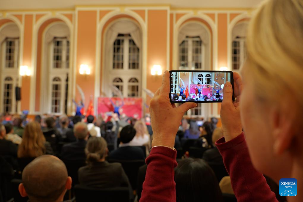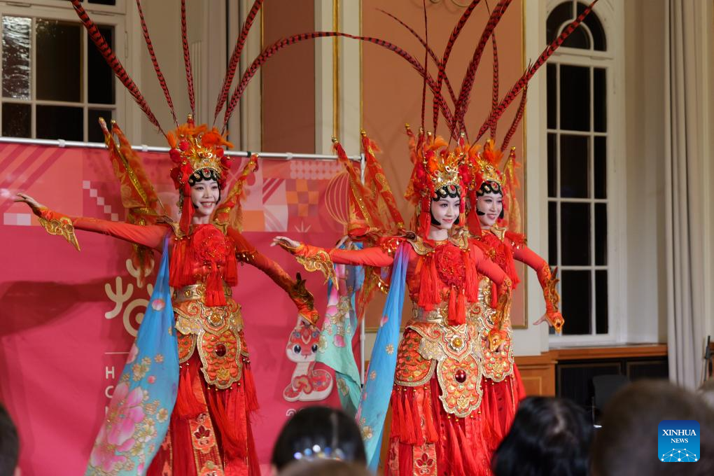 Artists perform opera and dance during the Snake "Happy Spring Festival" New Year Celebration Gala and Spring Festival Reception at the Red City Hall in Berlin, Germany, Jan. 17, 2025. The 2025 Year of the Snake "Happy Spring Festival" New Year Celebration Gala and Spring Festival Reception was held here on Friday with the presence of more than 350 guests from both China and Germany. (Xinhua/Tai Sicong)