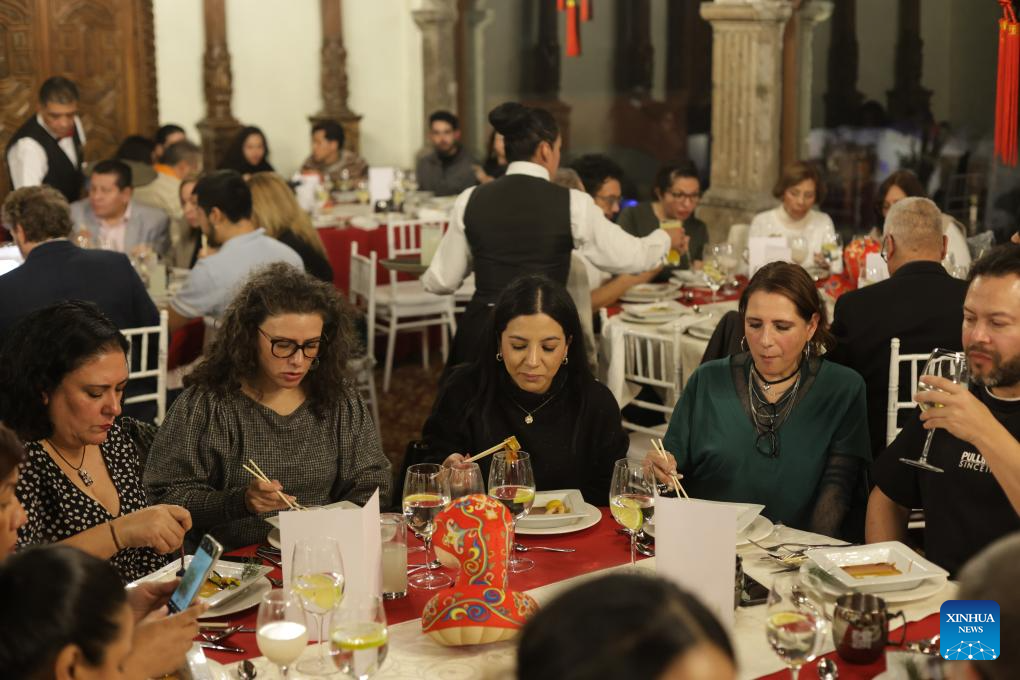 As part of the Spring Festival celebrations, the China Culture Center in Mexico City introduced local diners to a set of Chinese dishes that combine classic Chinese cuisine with innovative fusions. (Photo by Francisco Canedo/Xinhua)