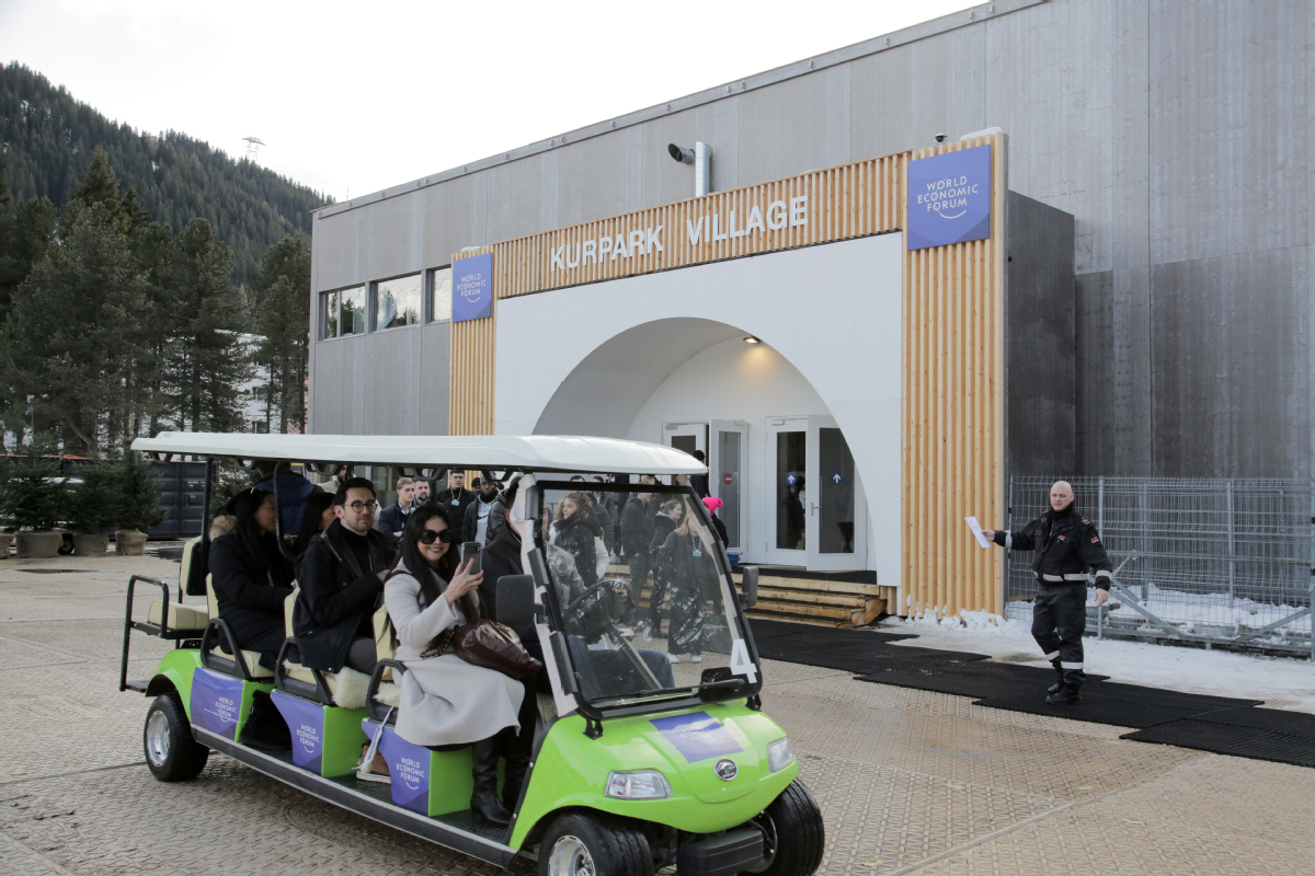 Delegates take a shuttle bus in Davos, Switzerland, on Sunday for the World Economic Forum Annual Meeting 2025, which runs from Monday to Friday. (Xing Yi/China Daily)