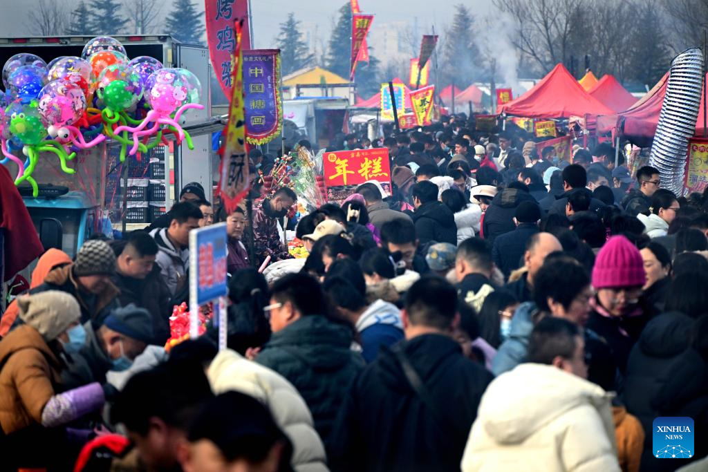 Traditional market in Qingdao attracts visitors ahead of Spring Festival