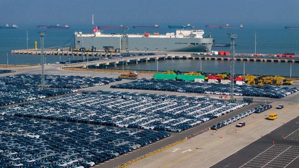 Chinese-made vehicles are about to be exported at an automobile terminal in Taicang, east China's Jiangsu province, Jan. 8, 2025. (People's Daily Online/Wang Xuzhong)