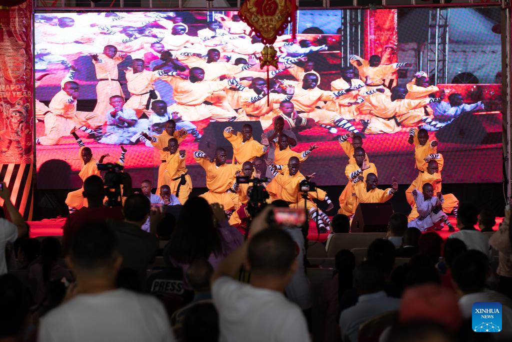 A Kung Fu performance is staged during the 2025 Zambia-Chinese Spring Festival Temple Fair in Lusaka, Zambia, Jan. 19, 2025. (Xinhua/Peng Lijun)