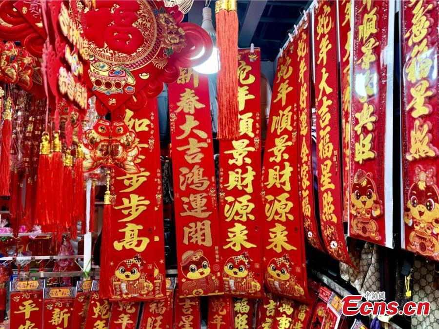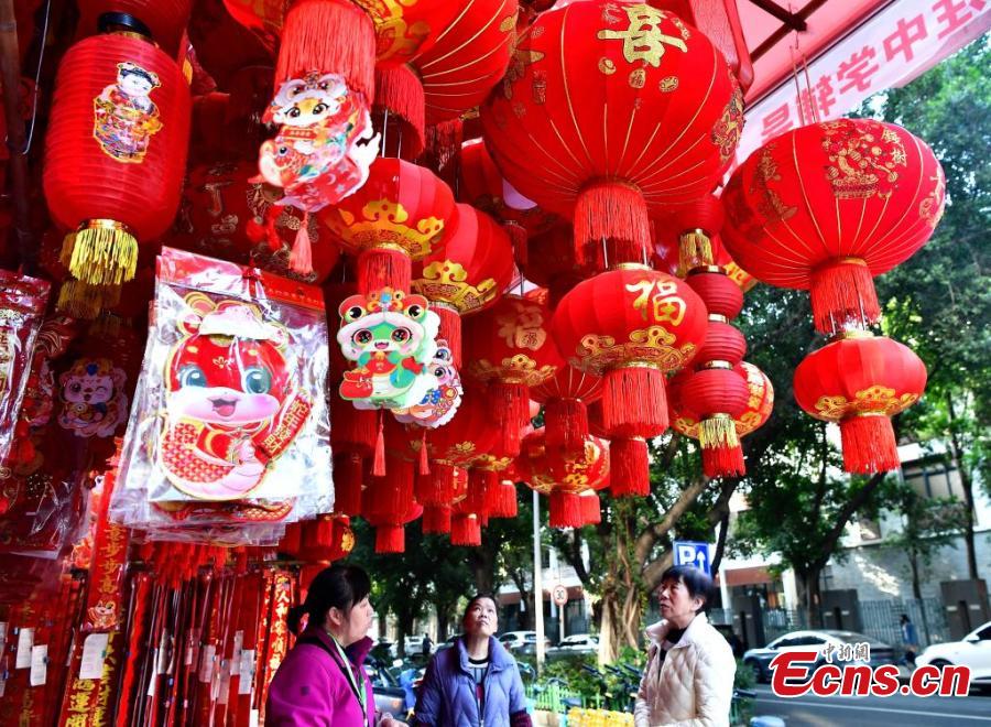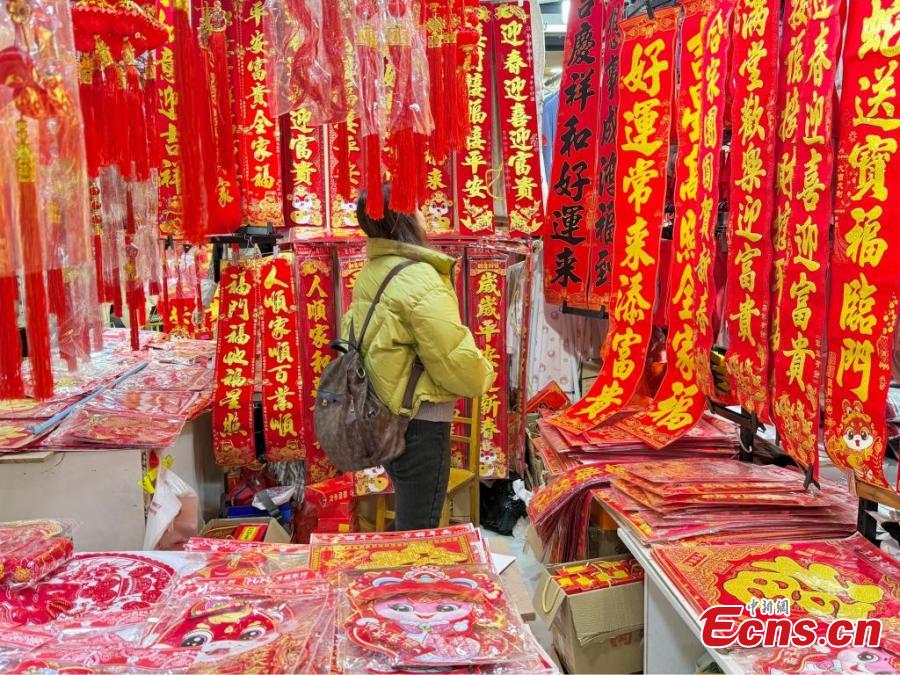 People shop for Spring Festival decorations in Fuzhou, east China's Fujian Province, Jan. 19, 2025. (China News Service/Zhang Bin)