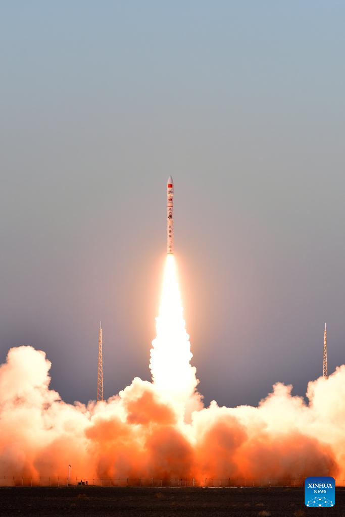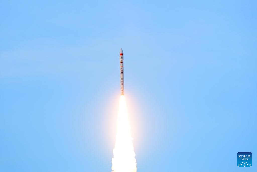 A CERES-1 carrier rocket carrying five satellites blasts off from the Jiuquan Satellite Launch Center in northwest China on Jan. 20, 2025. China on Monday launched a CERES-1 carrier rocket with five satellites onboard. The rocket blasted off at 6:11 p.m. (Beijing Time) and sent a group of satellites, including the Yunyao-1 37-40 and JTX-A-05 models, into their planned orbits. (Photo by Wang Jiangbo/Xinhua)