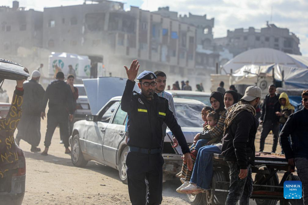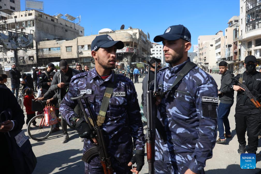 GAZA, Jan. 18 (Xinhua) -- Gaza's Hamas-run interior ministry said Saturday in a statement that its security forces will begin deploying across the Gaza Strip as soon as the ceasefire-for-hostage release deal takes effect on Sunday.