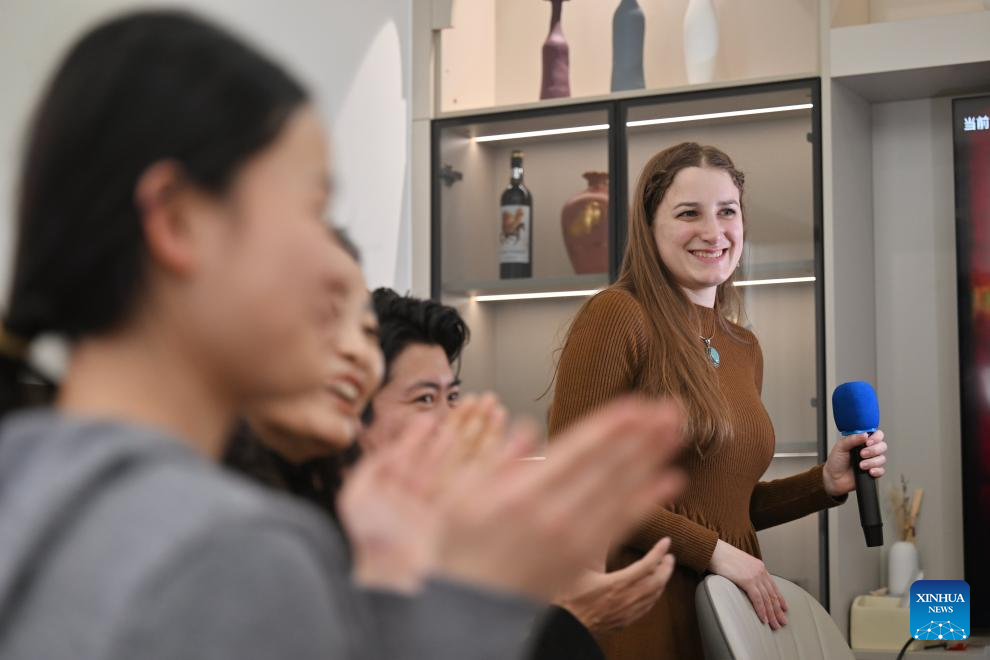 Sara Tentori sings songs at a family party in Nanying Village, Guanzhuang Town, Jizhou District, north China's Tianjin, Jan. 19, 2025. (Xinhua/Li Ran)