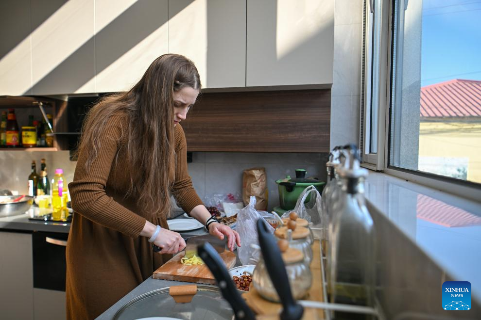 Sara Tentori prepares for lunch in Nanying Village, Guanzhuang Town, Jizhou District, north China's Tianjin, Jan. 19, 2025. (Xinhua/Sun Fanyue)