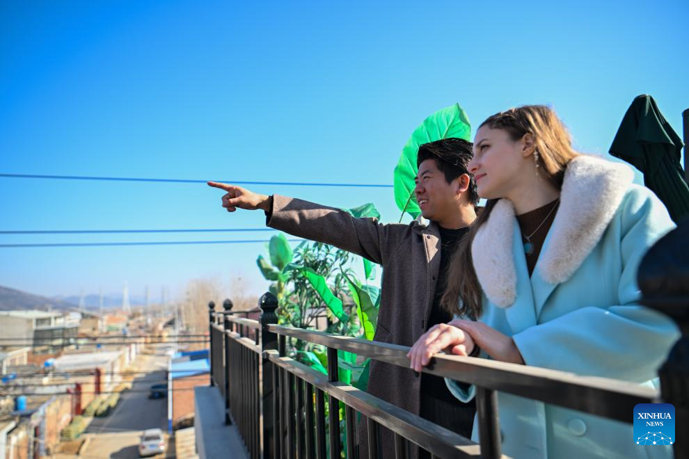 This photo taken on Jan. 19, 2025 shows Sara Tentori (R) and her husband Li Jian at their homestay in Nanying Village, Guanzhuang Town, Jizhou District, north China's Tianjin.(Xinhua/Sun Fanyue)