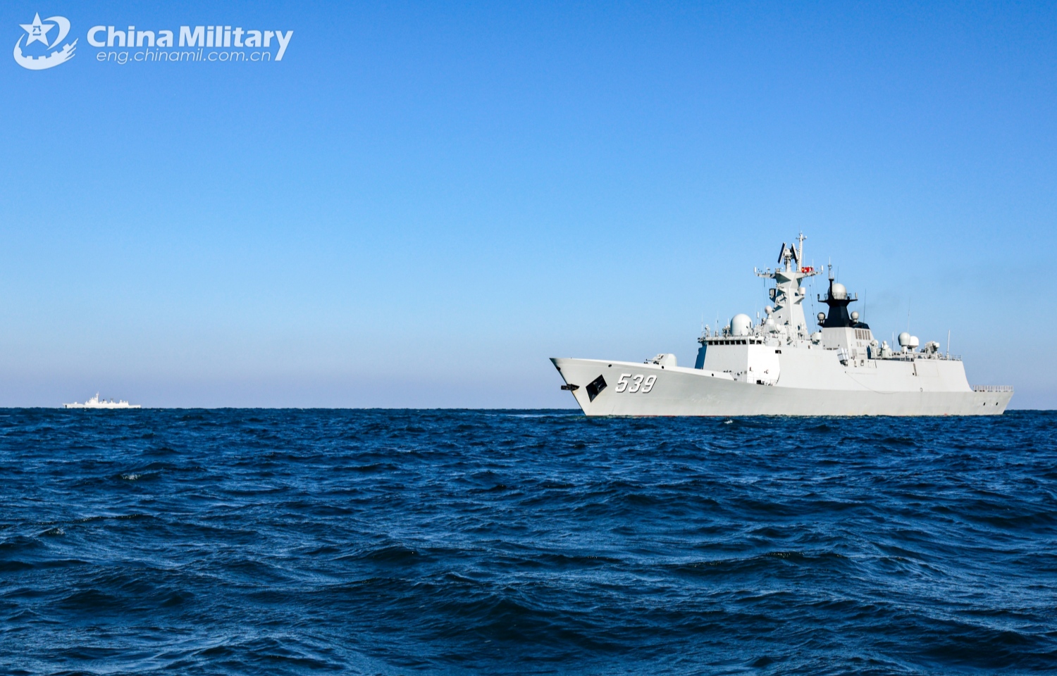 Type-054A guided missile frigate Wuhu (Hull 539) attached to a destroyer flotilla with the navy under the Chinese PLA Northern Theater Command sails to the designated area during a maritime training exercise on January 3, 2025. (eng.chinamil.com.cn/Photo by Ma Yubin)
