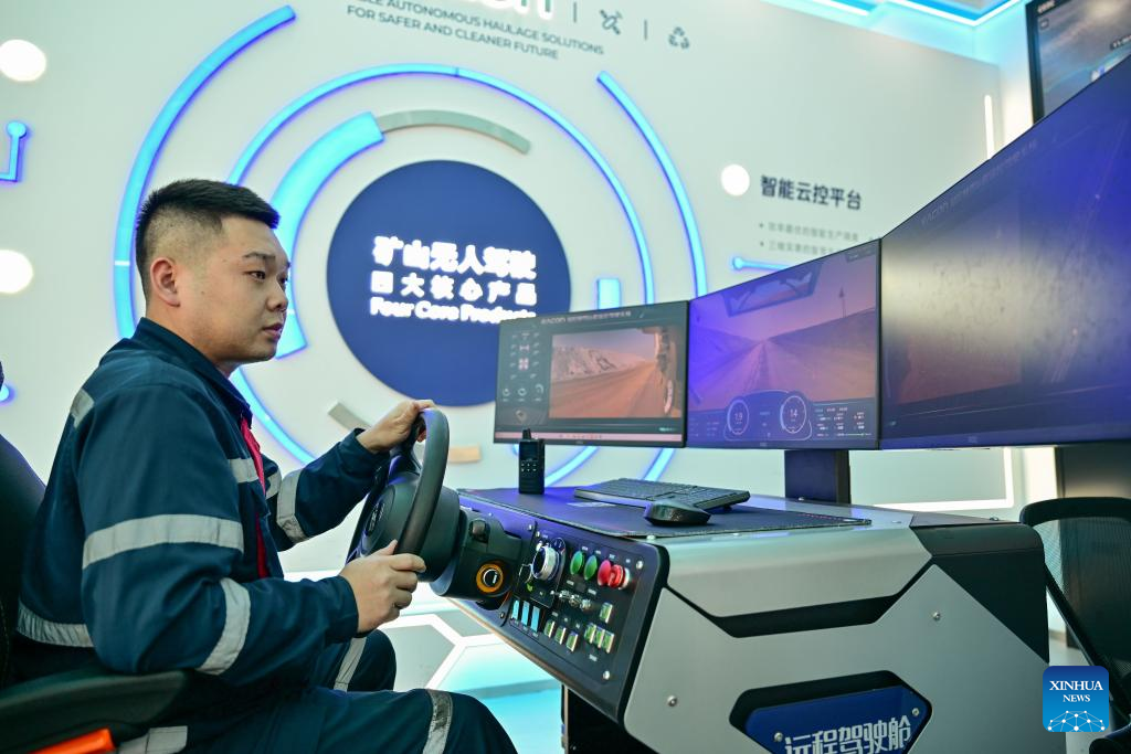 A staff member works at the intelligent cloud control center of an open-pit coal mine in Zhundong economic and technological development zone, northwest China's Xinjiang Uygur Autonomous Region, Jan. 20, 2025. By increasing the number of freight trains, the speed of trains, the load of trains and other measures, the Xinjiang railway has made every effort to ensure efficient coal transportation for the upcoming Spring Festival. (Xinhua/Ding Lei)