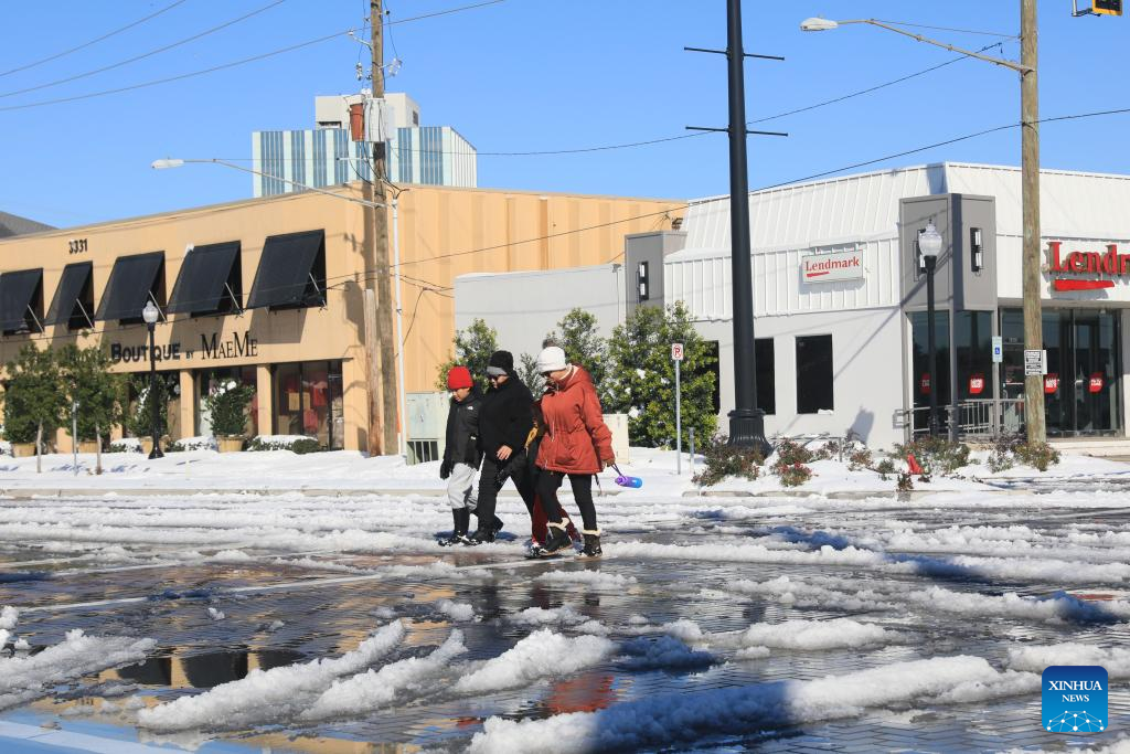 HOUSTON, Jan. 22 (Xinhua) -- A rare winter storm, known as Enzo, has swept through the southern U.S. with record-breaking snow and bitterly cold weather to typically mild regions along the Gulf Coast, claiming at least nine lives as of Wednesday morning.