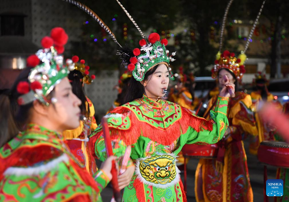 Members of an Yingge dance troupe perform during a rehearsal in Chaoyang District of Shantou City, south China's Guangdong Province, Jan. 20, 2025. Local Yingge dance troupes have been busy in rehearsing for performances to greet the upcoming Chinese New Year. The Yingge dance, or "dance to the hero's song," merges opera, dance, and martial arts. Dating back to the Ming Dynasty (1368-1644), this traditional dance is often performed during traditional Chinese festivals. The Yingge dance was listed as the first batch of national intangible cultural heritage in 2006. (Xinhua/Deng Hua)