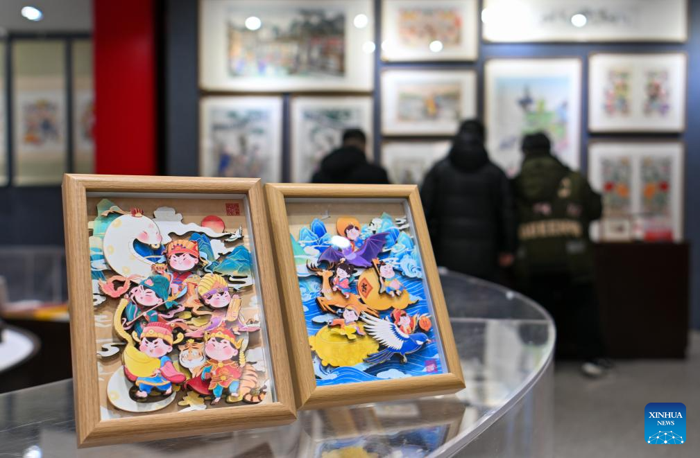 With the approaching of the lunar new year, a series of cultural and creative products carrying the Yangliuqing woodblock new year pictures have been created under the inspiration of the Year of the Snake. (Xinhua/Sun Fanyue)