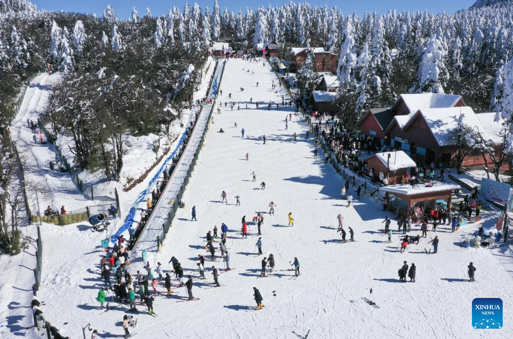 According to the Sichuan Provincial Department of Culture and Tourism, Sichuan has nearly 50 snow and ice tourism areas and 16 key ski resorts, attracting numerous tourists and snow sports enthusiasts each snow season. (Xinhua/Liu Kun)
