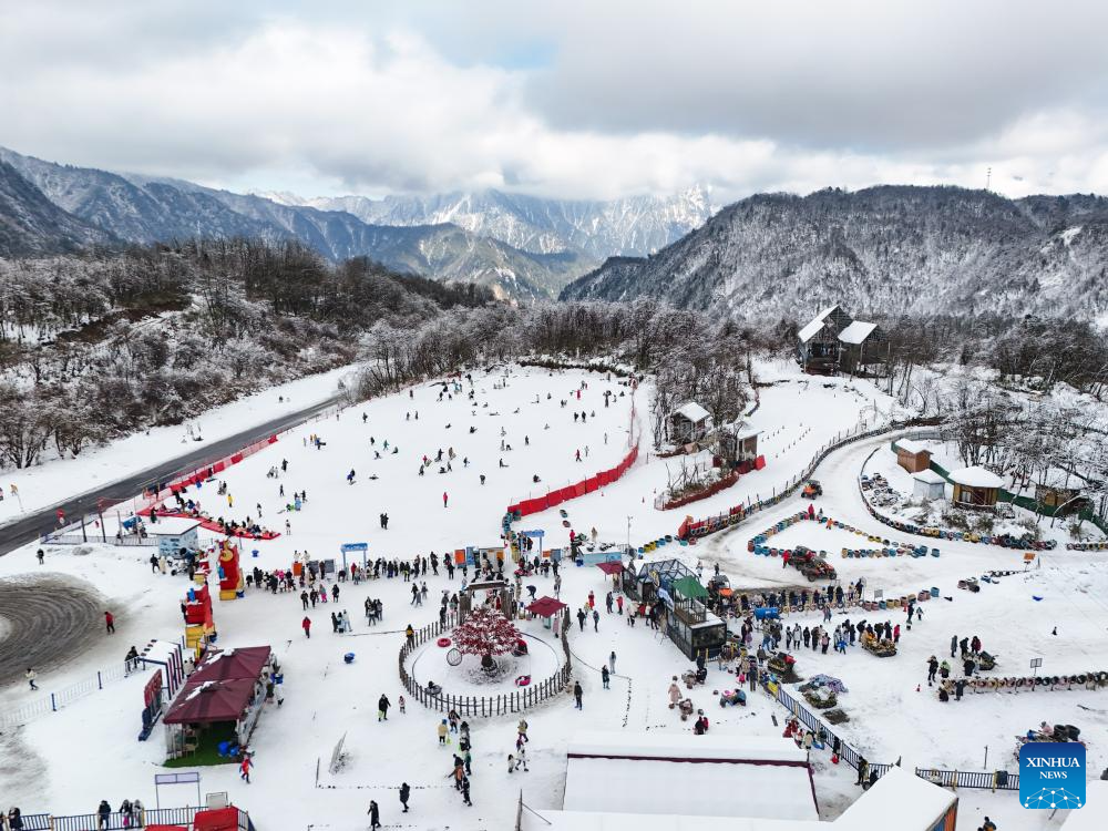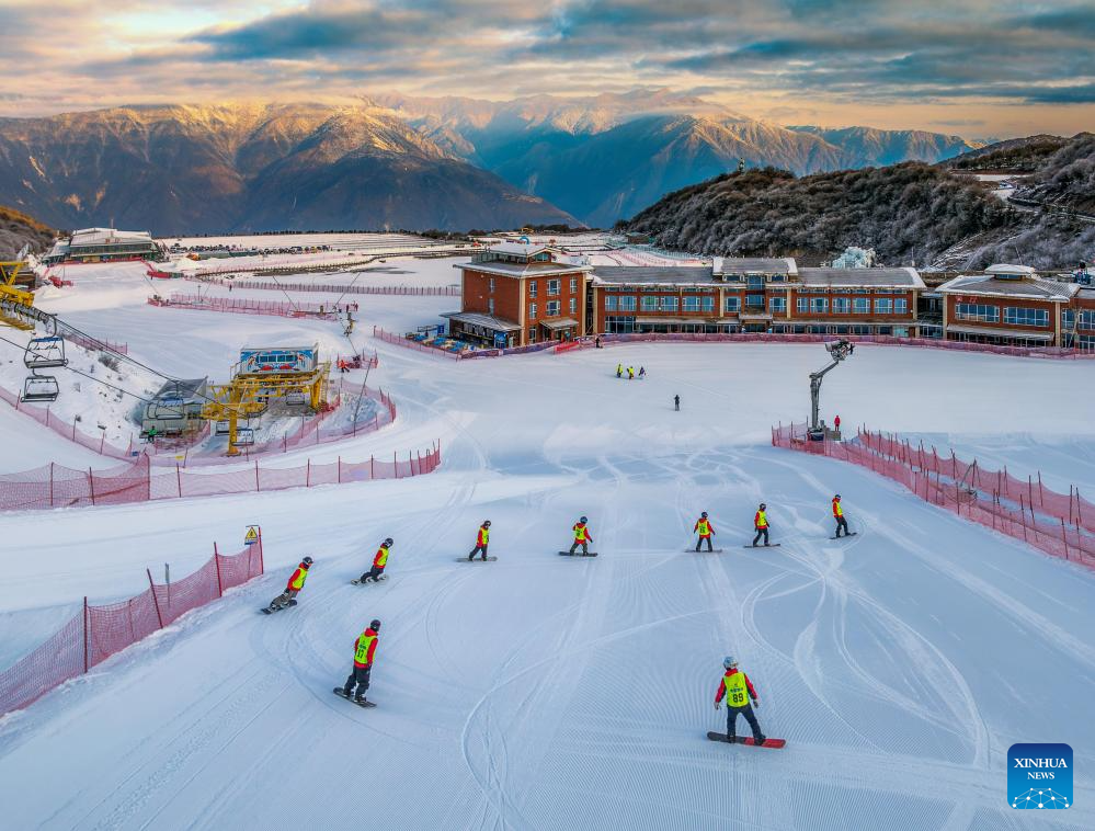 According to the Sichuan Provincial Department of Culture and Tourism, Sichuan has nearly 50 snow and ice tourism areas and 16 key ski resorts, attracting numerous tourists and snow sports enthusiasts each snow season. (Xinhua/Wang Xi)
