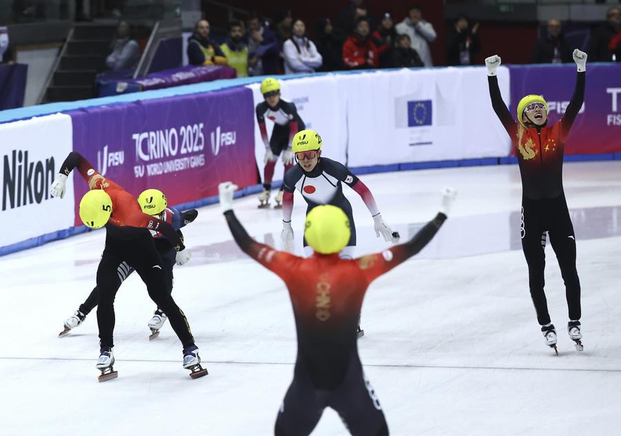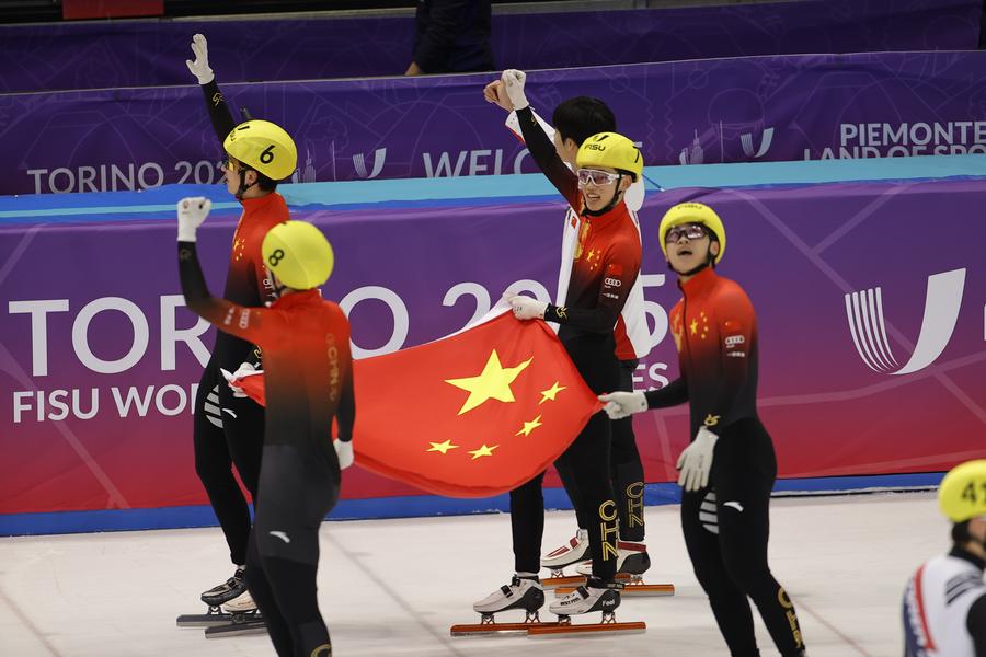 TURIN, Italy, Jan. 24 (Xinhua) -- Chinese skaters delivered a thrilling performance in the men's 5000m short track speed skating relay final on the last day of the Torino 2025 FISU World University Winter Games on Thursday, securing the Chinese delegation's only gold medal at the Games.