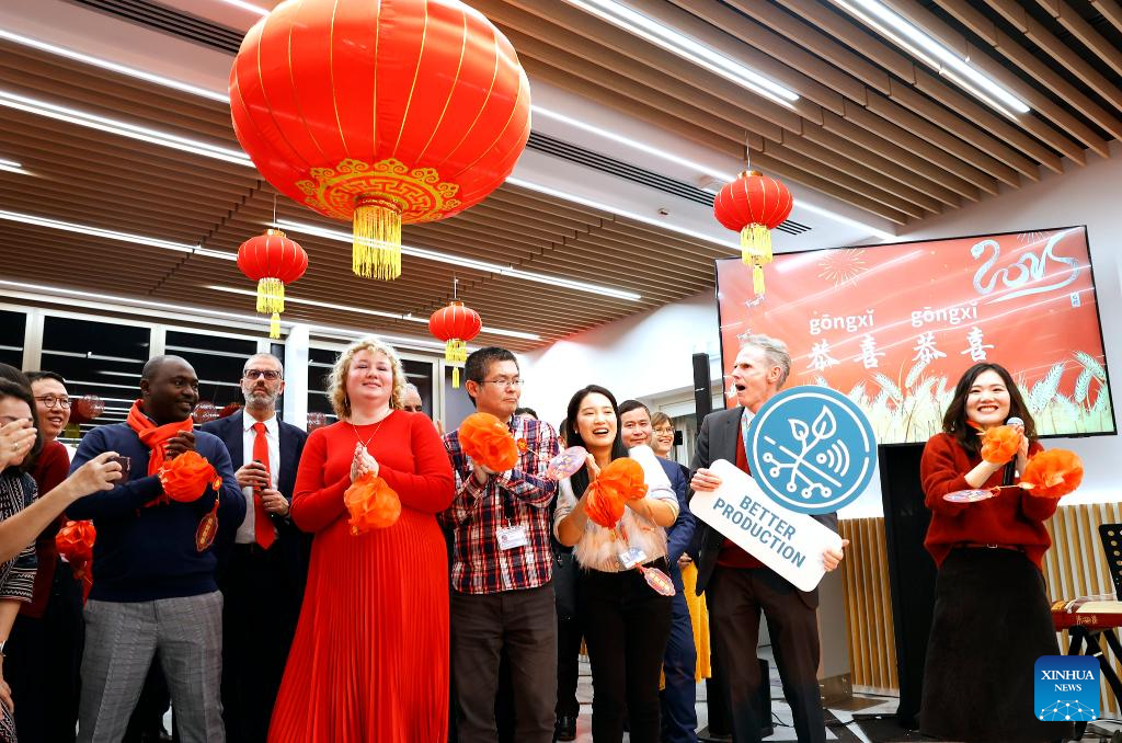 People celebrate the Chinese Year of the Snake at the headquarters of the United Nations Food and Agriculture Organization (FAO) in Rome, Italy, Jan. 23, 2025. (FAO/Handout via Xinhua)