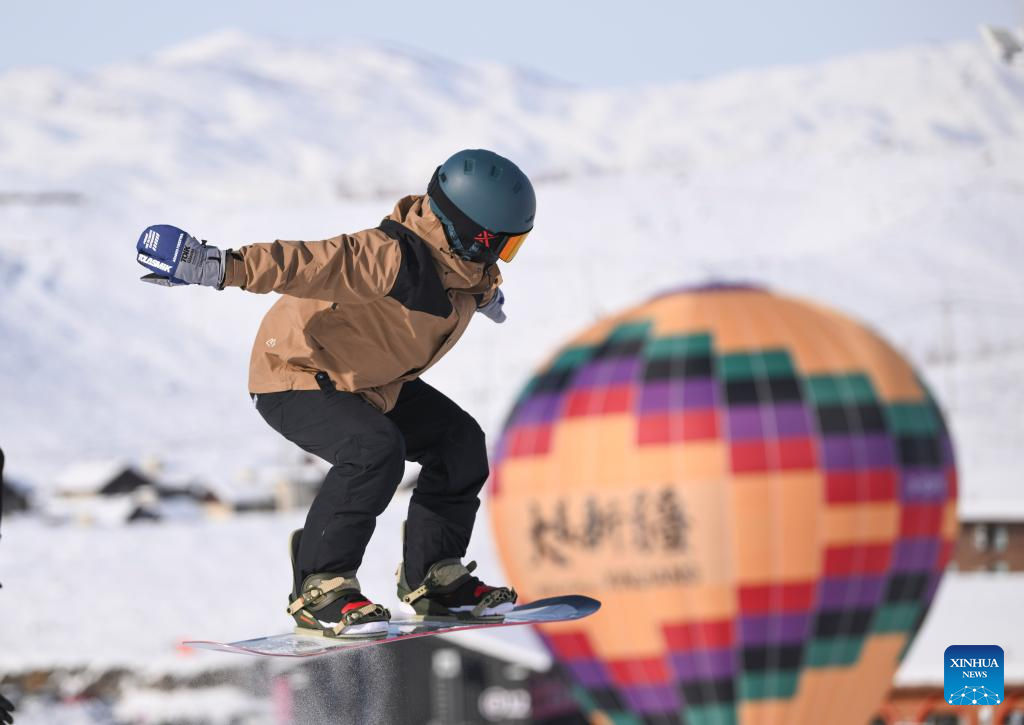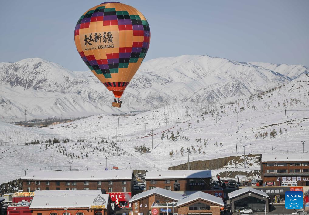 Tourists take a hot air balloon at Jiangjunshan Ski Resort in Altay, northwest China's Xinjiang Uygur Autonomous Region, Jan. 25, 2025. (Xinhua/Hu Huhu)