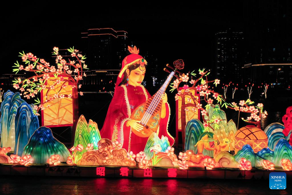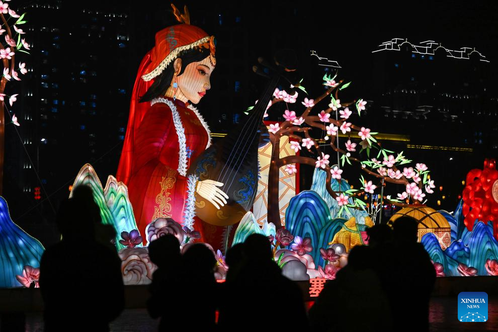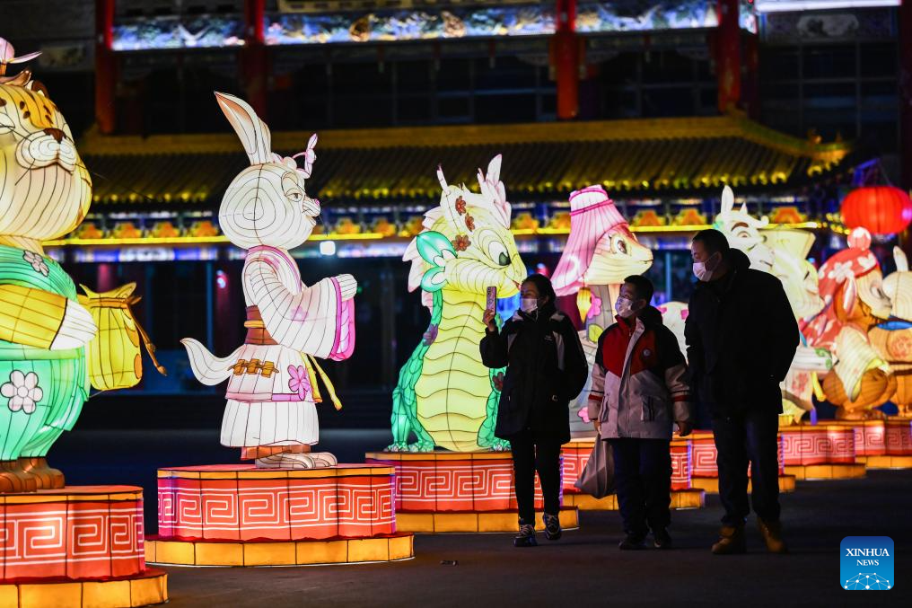 As the Spring Festival approaches, colorful light decorations were set up in Hohhot for festive atmosphere, which attracted many citizens. (Xinhua/Li Zhipeng)