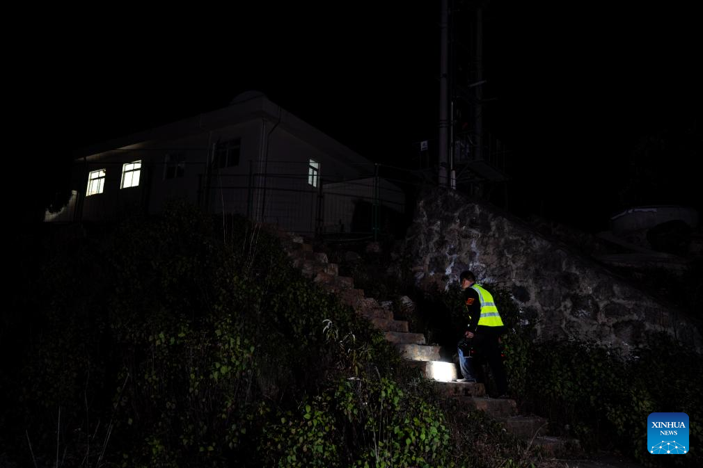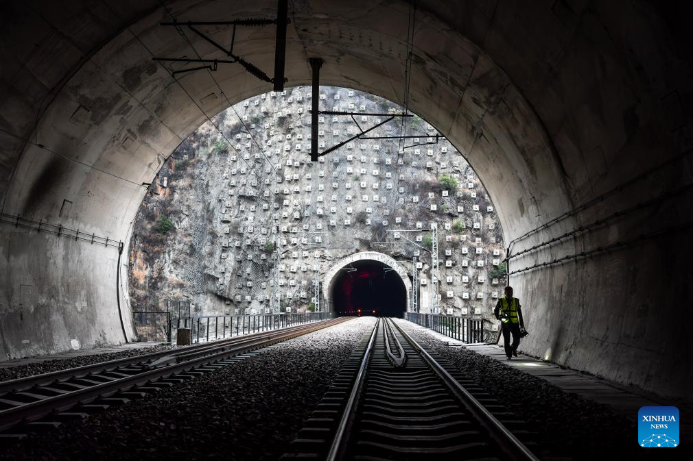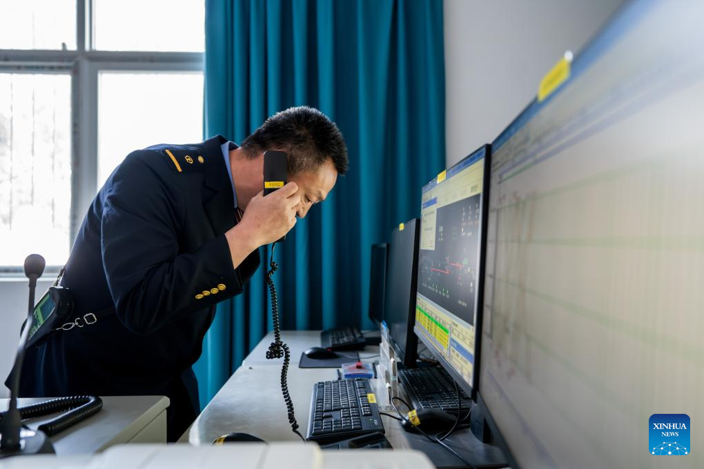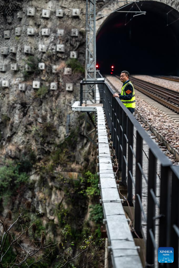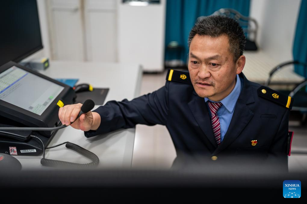 Li Yanlin monitors the equipment at the Zhugecheng Railway Station in Dali Bai Autonomous Prefecture of southwest China's Yunnan Province, Jan. 21, 2025. Zhugecheng Railway Station is a small crossing station on the railway connecting Dali and Lijiang cities in southwest China's Yunnan Province. Li Yanlin, who is 50, has worked as a station watchman here for 15 years. (Xinhua/Hu Chao)
