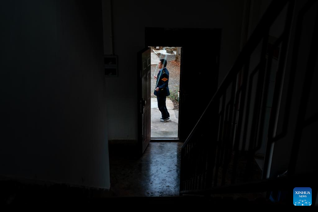 Li Yanlin does exercises at the Zhugecheng Railway Station in Dali Bai Autonomous Prefecture of southwest China's Yunnan Province, Jan. 21, 2025. Zhugecheng Railway Station is a small crossing station on the railway connecting Dali and Lijiang cities in southwest China's Yunnan Province. Li Yanlin, who is 50, has worked as a station watchman here for 15 years. (Xinhua/Hu Chao)