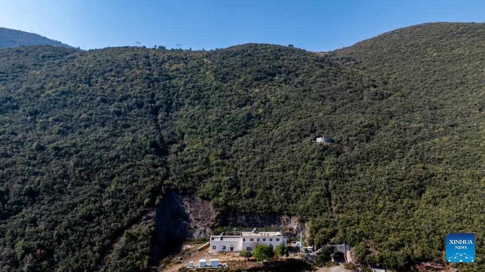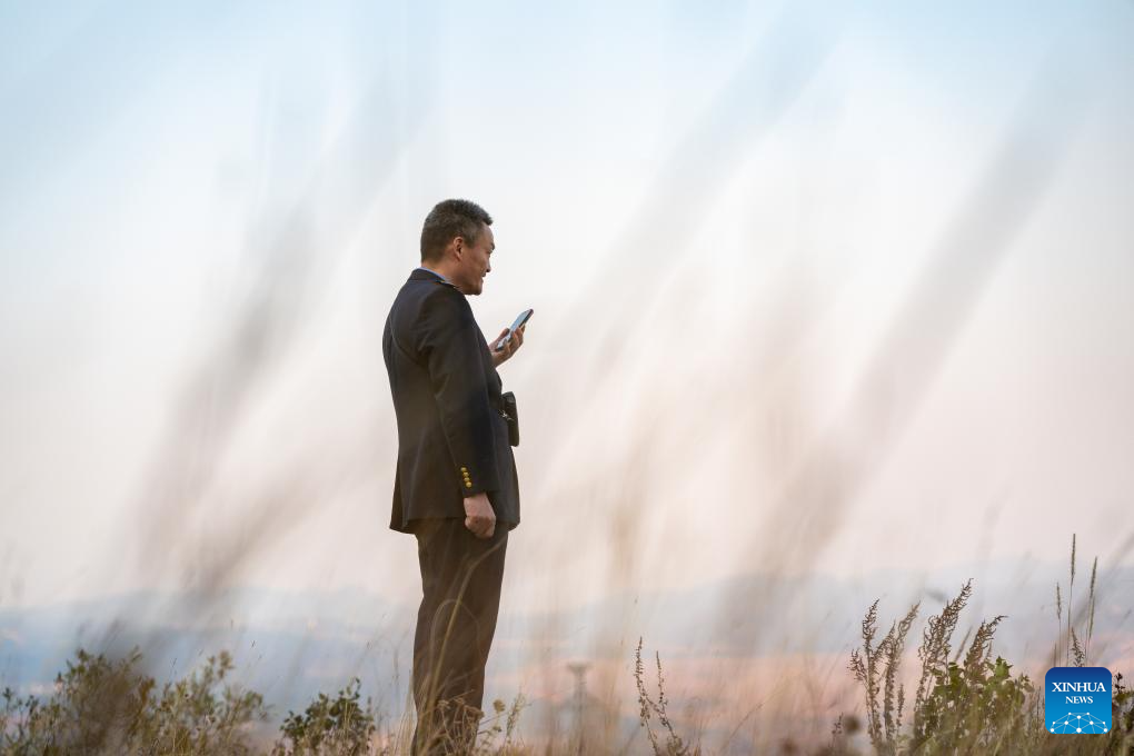 Li Yanlin calls his wife near the Zhugecheng Railway Station in Dali Bai Autonomous Prefecture of southwest China's Yunnan Province, Jan. 20, 2025. Zhugecheng Railway Station is a small crossing station on the railway connecting Dali and Lijiang cities in southwest China's Yunnan Province. Li Yanlin, who is 50, has worked as a station watchman here for 15 years. (Xinhua/Hu Chao)