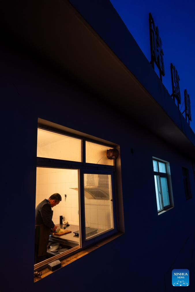 Li Yanlin cooks dinner at the kitchen of the Zhugecheng Railway Station in Dali Bai Autonomous Prefecture of southwest China's Yunnan Province, Jan. 21, 2025. Zhugecheng Railway Station is a small crossing station on the railway connecting Dali and Lijiang cities in southwest China's Yunnan Province. Li Yanlin, who is 50, has worked as a station watchman here for 15 years. (Xinhua/Hu Chao)