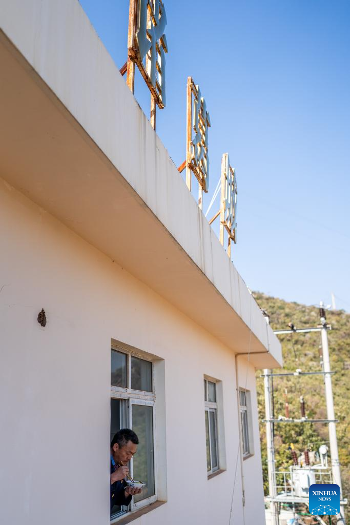 Li Yanlin has lunch at the Zhugecheng Railway Station in Dali Bai Autonomous Prefecture of southwest China's Yunnan Province, Jan. 21, 2025. Zhugecheng Railway Station is a small crossing station on the railway connecting Dali and Lijiang cities in southwest China's Yunnan Province. Li Yanlin, who is 50, has worked as a station watchman here for 15 years. (Xinhua/Hu Chao)