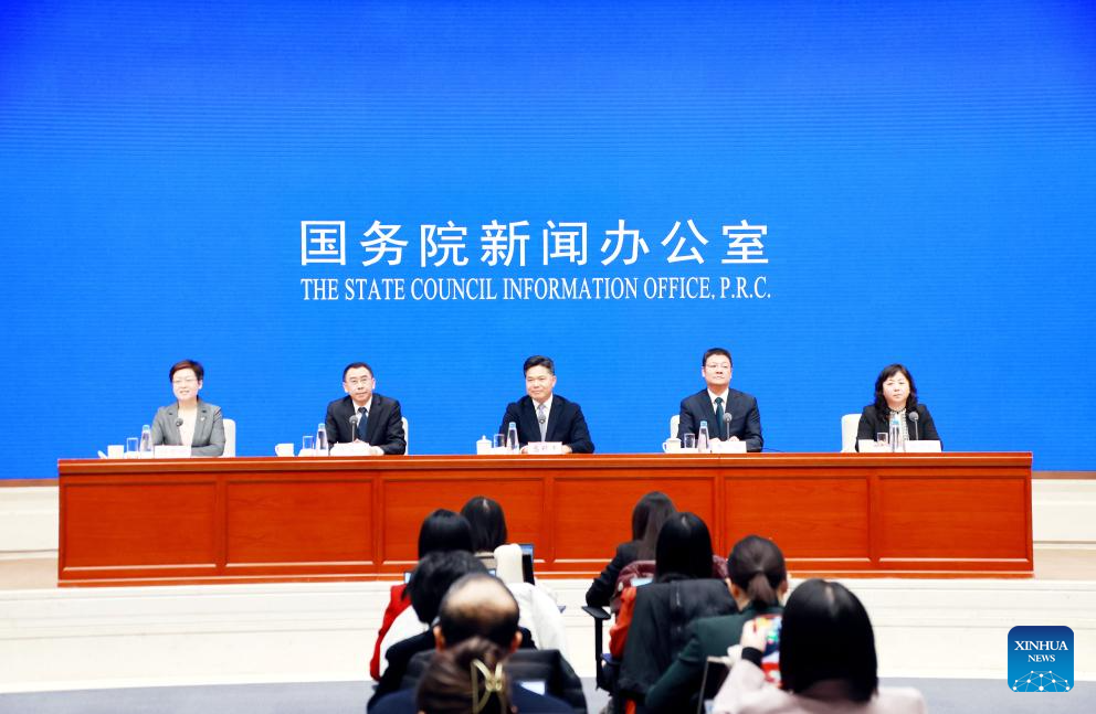 A press conference on ensuring market supply and promoting consumption during the Spring Festival is held by the State Council Information Office in Beijing, capital of China, Jan. 24, 2025. (Xinhua/Pan Xu)