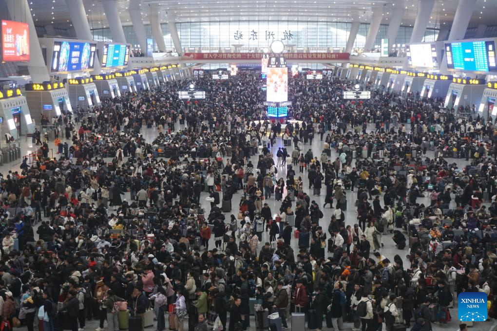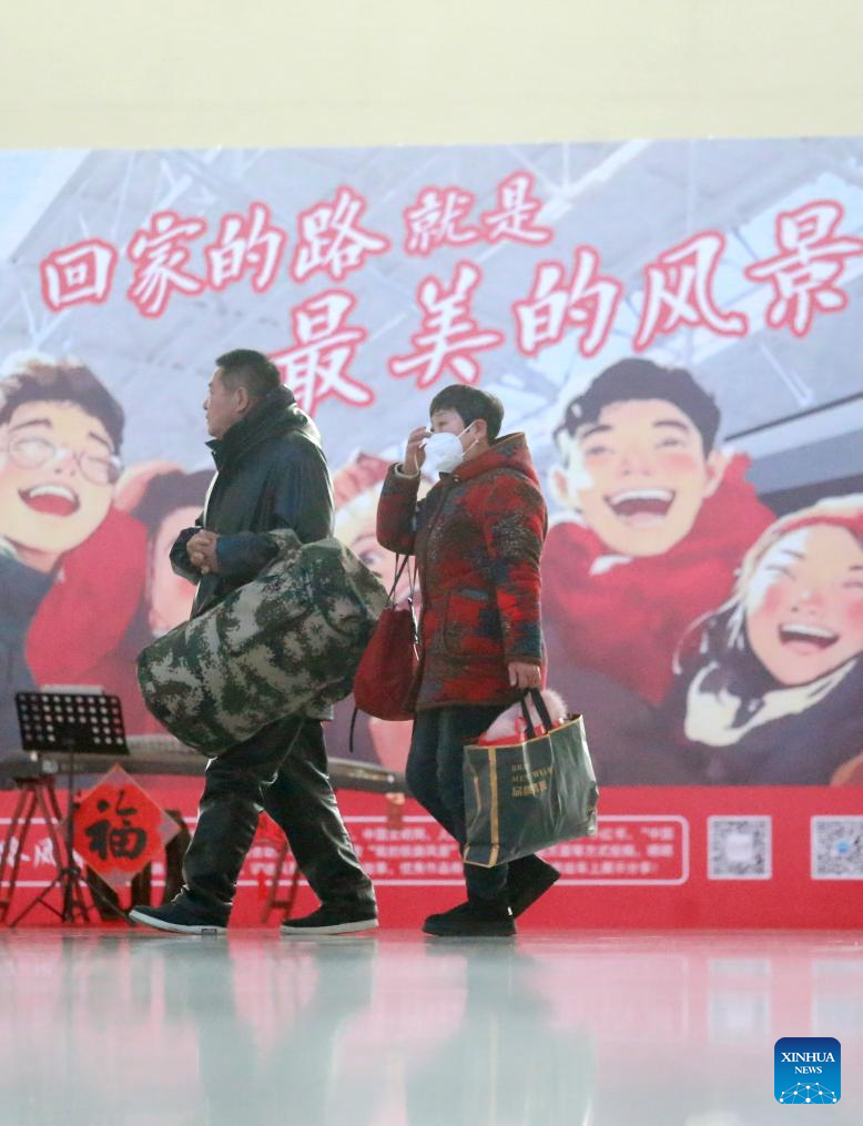 Passengers are about to enter the Yangzhou East Railway Station in Yangzhou, east China's Jiangsu Province, Jan. 25, 2025.