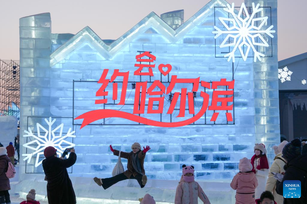 Tourists have fun at the Harbin Ice-Snow World in Harbin, capital of northeast China's Heilongjiang Province, Jan. 23, 2025. Harbin has emerged as one of the country's top winter travel destinations, attracting visitors from around the globe. As the city's iconic landmark, the Harbin Ice-Snow World, with this year's edition, the largest in its history, boasts 1 million square meters. (Xinhua/Wang Jianwei)