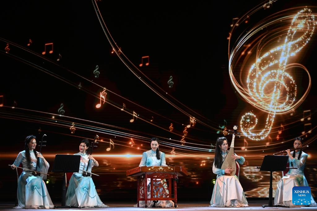 Chinese artists perform to celebrate the upcoming Chinese New Year, or the Spring Festival, at the Mediterranean Conference Center in Valletta, Malta, Jan. 24, 2025. (Photo by Jonathan Borg/Xinhua)