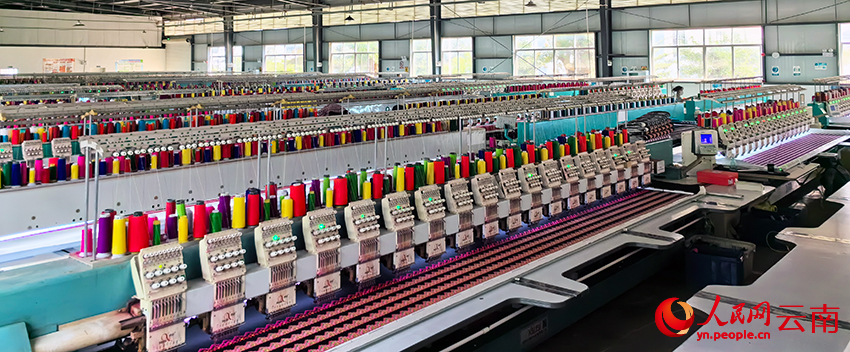 The workshop belongs to Wenshan Yufurong Ethnic Embroidery Co., Ltd., the largest computerized embroidery enterprise in southwest China's Yunnan Province. Workers and machines are busy fulfilling orders for the upcoming Spring Festival, or Chinese New Year.