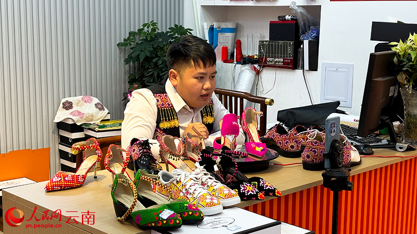 Embroidered shoes with an ethnic flair are highly sought after in Babao town, Wenshan Zhuang and Miao Autonomous Prefecture, southwest China's Yunnan Province. (Photo/Luo Rui)