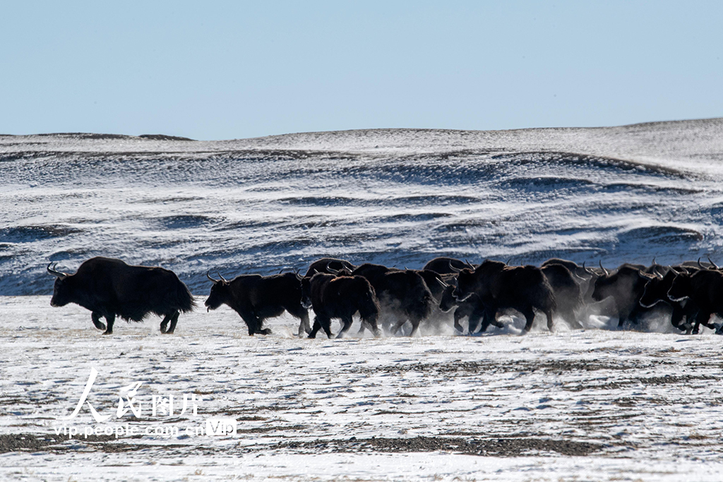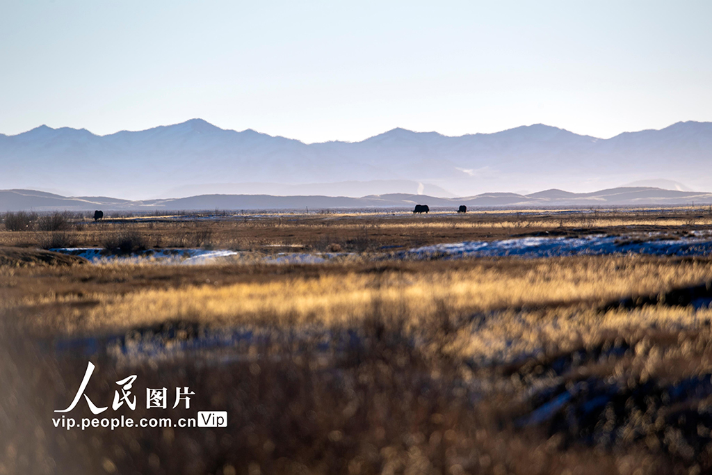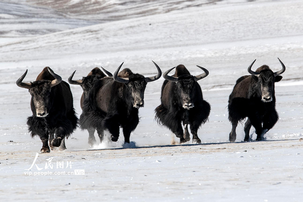 At the foot of the majestic Qilian Mountains, large herds of wild yaks, Tibetan wild donkeys, as well as groups of Argali sheep, Tibetan antelope, and white-lipped deer—protected species in China—roam freely across the vast snowy plateau, foraging and resting. Their presence breathes life into the winter landscape of the plateau, presenting a harmonious ecosystem and natural beauty.