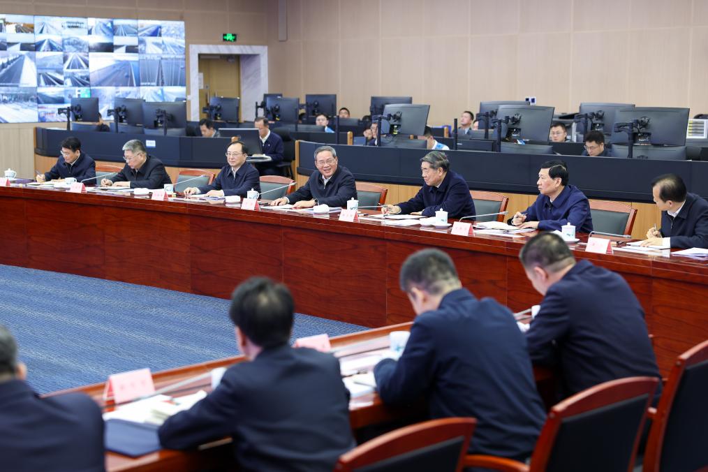 Chinese Premier Li Qiang, also a member of the Standing Committee of the Political Bureau of the Communist Party of China Central Committee, inspects Ministry of Transport work for the Spring Festival travel rush in Beijing, capital of China, Jan. 27, 2025. (Xinhua/Liu Bin)