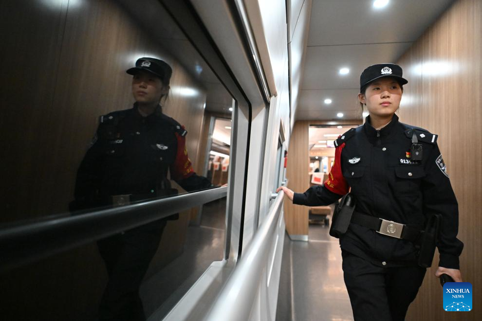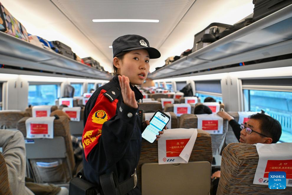 Feng patrols the train carriages more often during the Spring Festival travel rush than before and raises safety awareness among passengers. Constant attention to details, understanding passenger needs and risk prevention are crucial aspects of her work.