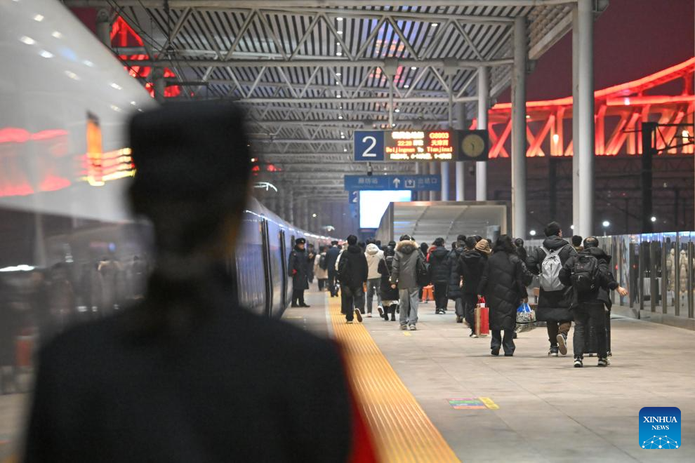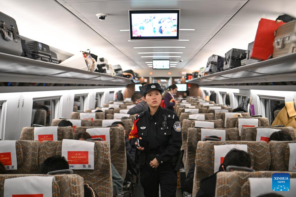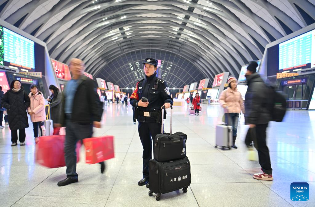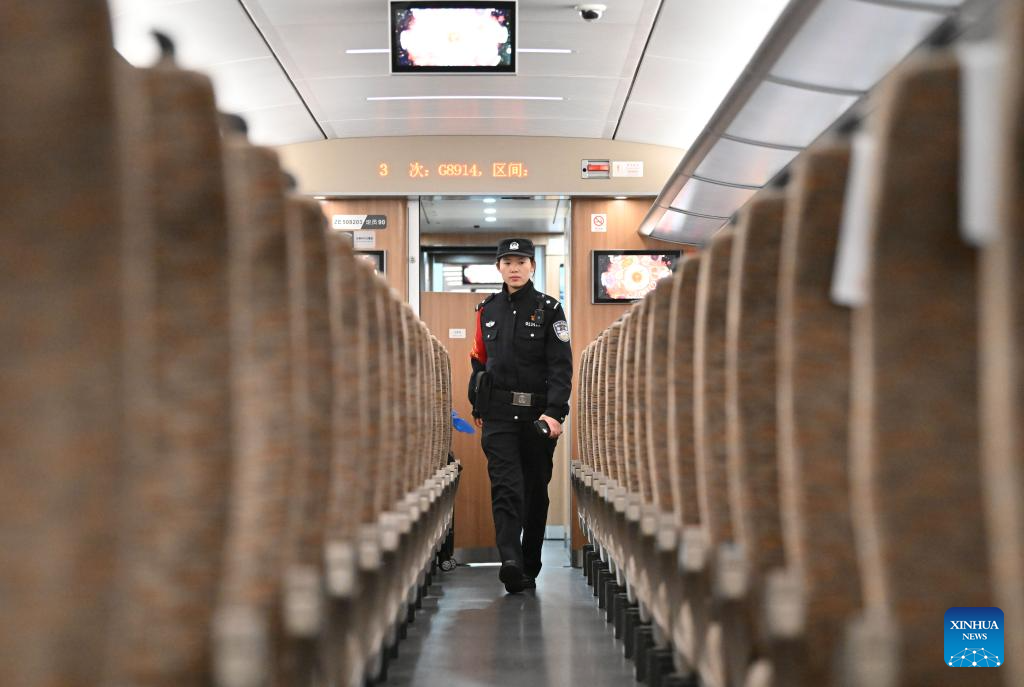 The travel surge sees people return home and reunite with their families and friends. Thanks to the tireless contributions of frontline guardians like Feng, every journey home is made safe and smooth. (Xinhua/Sun Fanyue)
