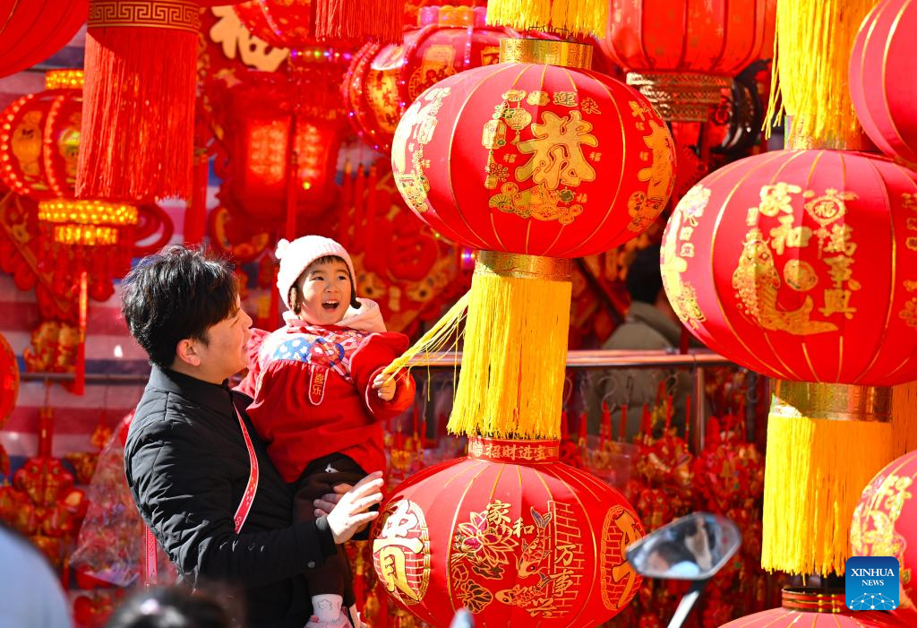 Residents buy Spring Festival decorations at a fair in Xingtai, north China's Hebei Province, Jan. 27, 2025. China is alive with vibrant celebrations with the Spring Festival just around the corner. (Xinhua/Wang Xiao)