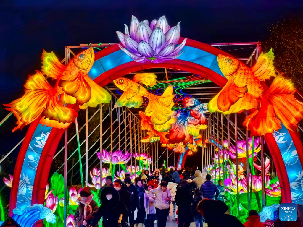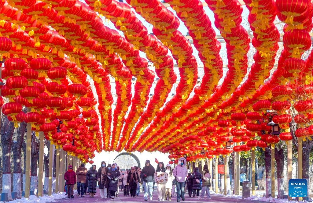Tourists visit a Spring Festival lantern fair in Nantong, east China's Jiangsu Province, Jan. 27, 2025. China is alive with vibrant celebrations with the Spring Festival just around the corner. (Photo by Xu Congjun/Xinhua)