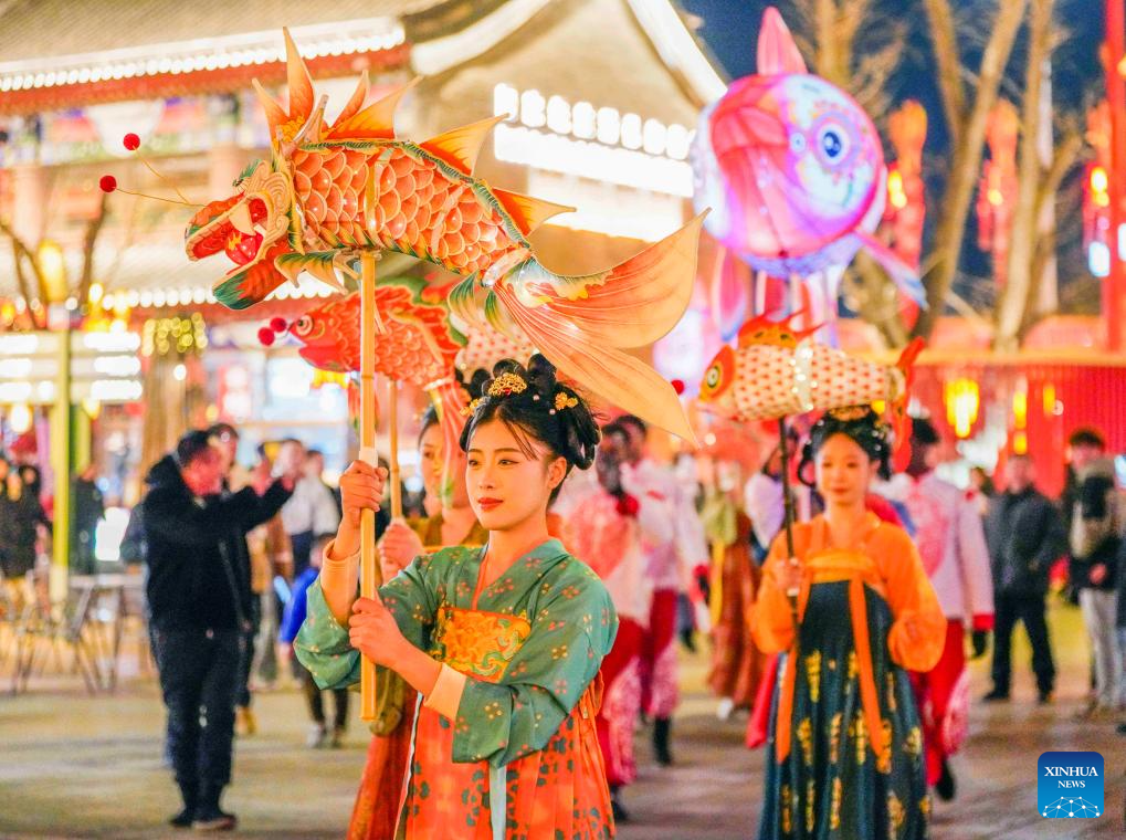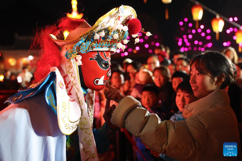A performance is staged at the Hetou ancient street scenic area in Tangshan, north China's Hebei Province, Jan. 26, 2025. China is alive with vibrant celebrations with the Spring Festival just around the corner. (Photo by Liu Mancang/Xinhua)