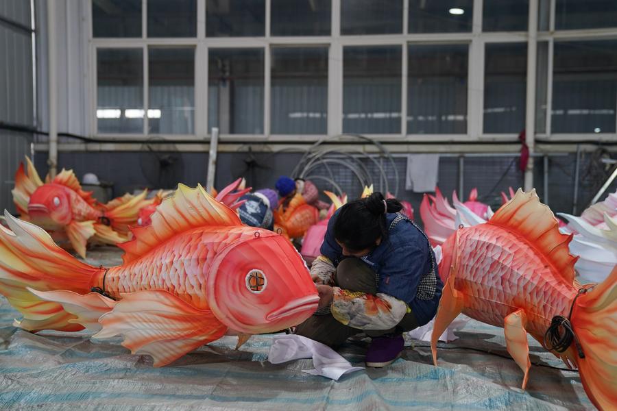 A worker decorates a lantern at a workshop in Zigong, southwest China's Sichuan Province, Jan. 14, 2025. (Xinhua/Xu Bingjie)