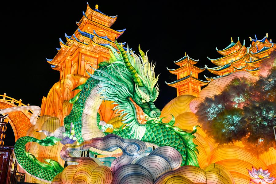 Light installations are seen at the 31st Zigong International Dinosaur Lantern Show in Zigong, southwest China's Sichuan Province, Jan. 29, 2025. (Xinhua)
