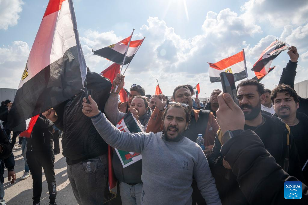 CAIRO, Jan. 31 (Xinhua) -- Thousands of people gathered on Friday near the Egyptian side of the Rafah crossing, the only channel linking Egypt with the Gaza Strip, to express opposition to the displacement of Palestinians.