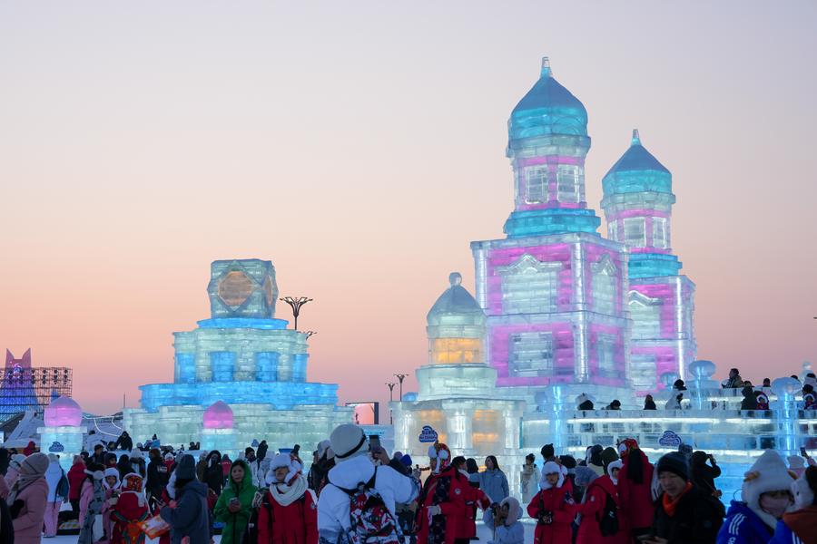 People visit the Harbin Ice-Snow World in Harbin, northeast China's Heilongjiang Province, Jan. 23, 2025. (Xinhua/Wang Jianwei)