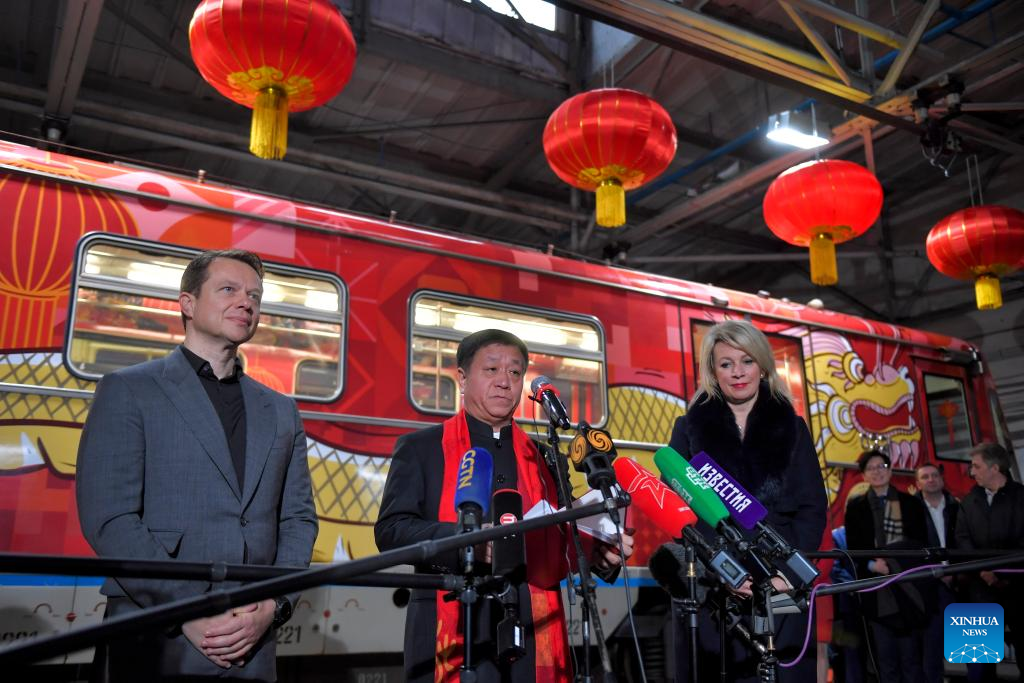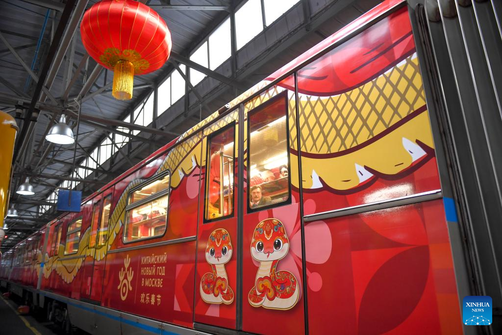 MOSCOW, Jan. 30 (Xinhua) -- Moscow unveiled a themed metro train on Wednesday to mark the start of the Spring Festival, the traditional Chinese New Year according to the lunar calendar.