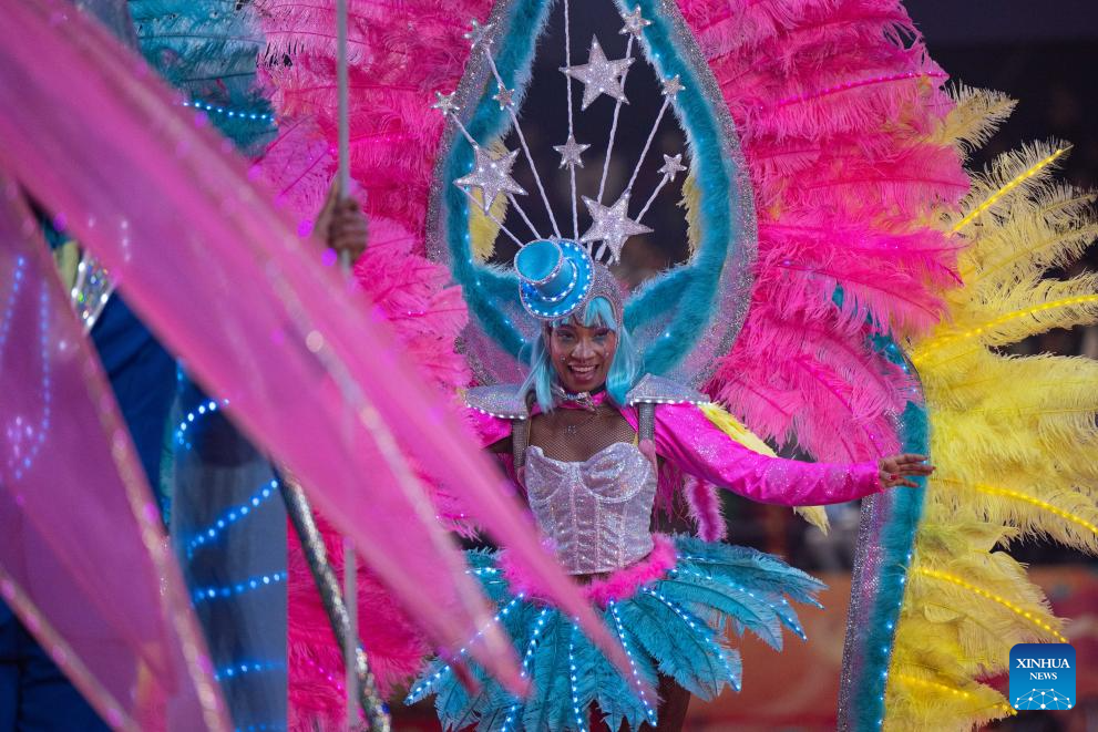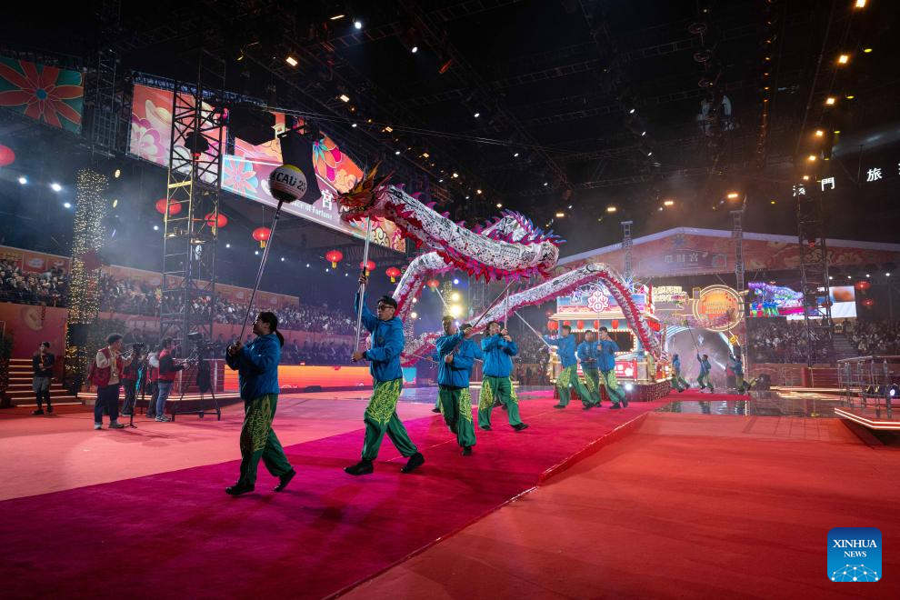 This picture shows the opening ceremony of a parade in celebration of the Chinese New Year in Macao, south China, Jan. 31, 2025. A parade was held Friday by the Macao Government Tourism Office in Macao to celebrate the Chinese New Year, or the Spring Festival. (Xinhua/Cheong Kam Ka)