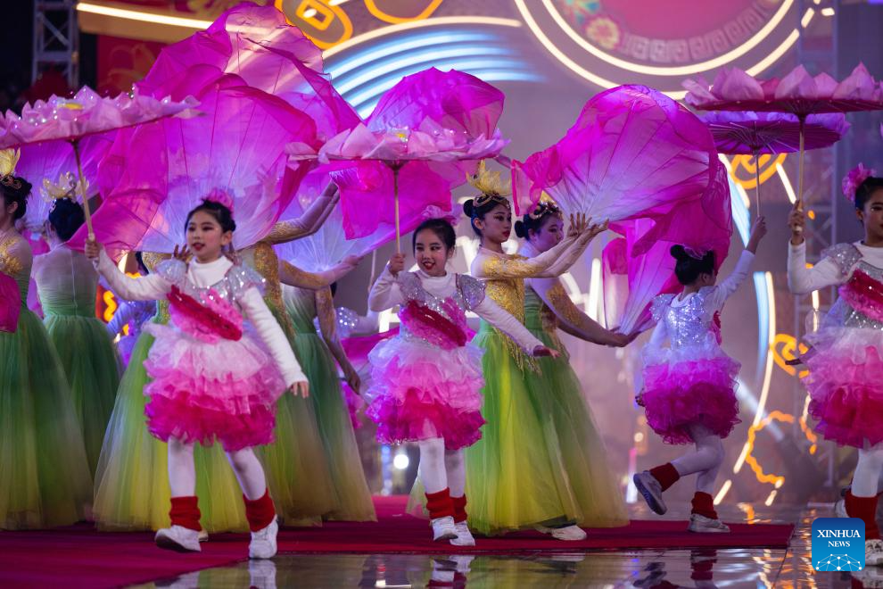 Children perform during a parade in celebration of the Chinese New Year in Macao, south China, Jan. 31, 2025. A parade was held Friday by the Macao Government Tourism Office in Macao to celebrate the Chinese New Year, or the Spring Festival. (Xinhua/Cheong Kam Ka)