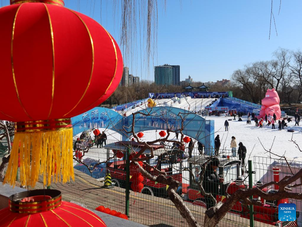 This photo taken on Feb. 3, 2025 shows the ice and snow festival at Longtan Park in Dongcheng District in Beijing, capital of China. During the Spring Festival holiday, many tourist destinations in China have attracted visitors with ice and snow activities. (Xinhua/Wu Qinghao)